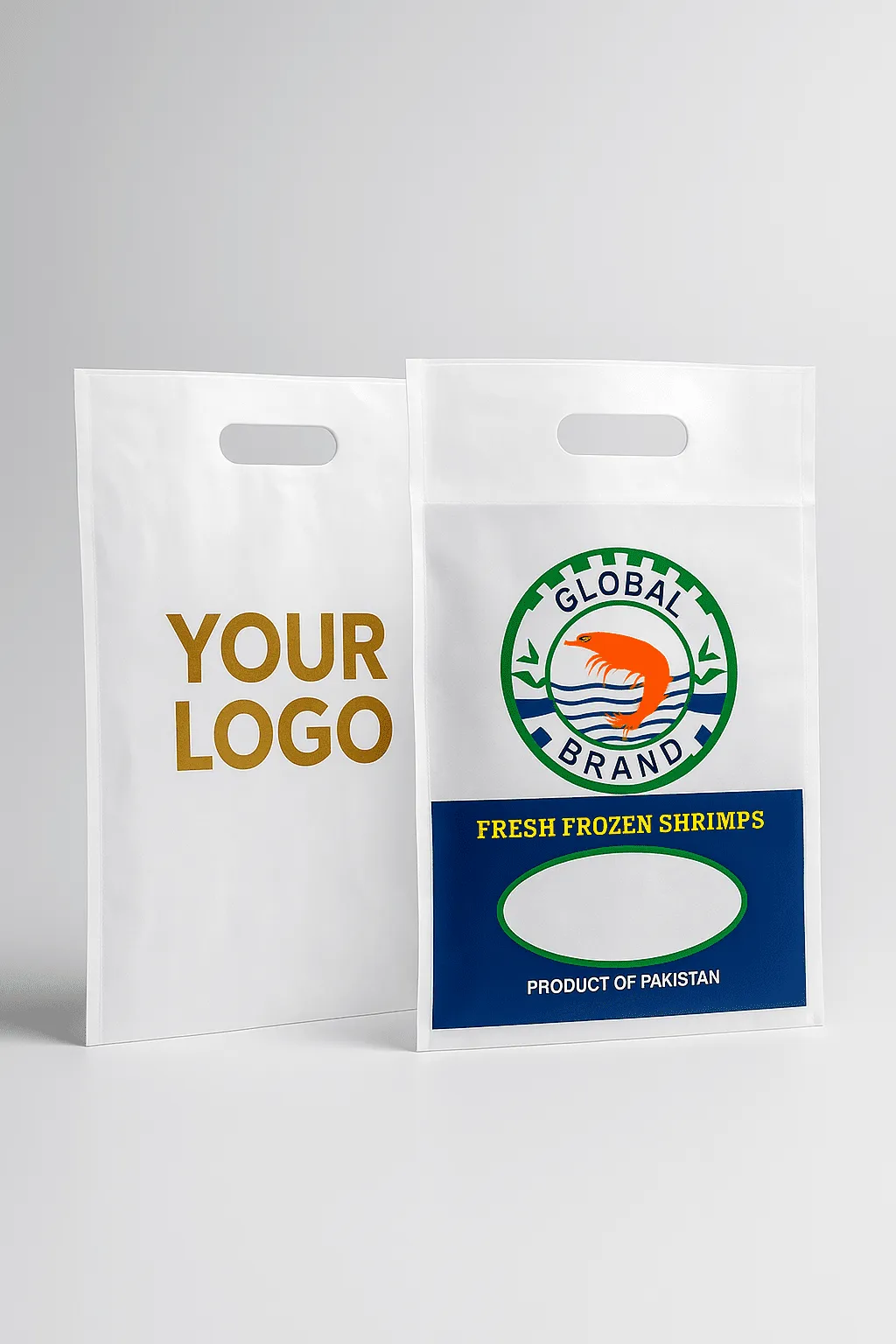 Food-grade vacuum bags for frozen, fresh, and export packaging.