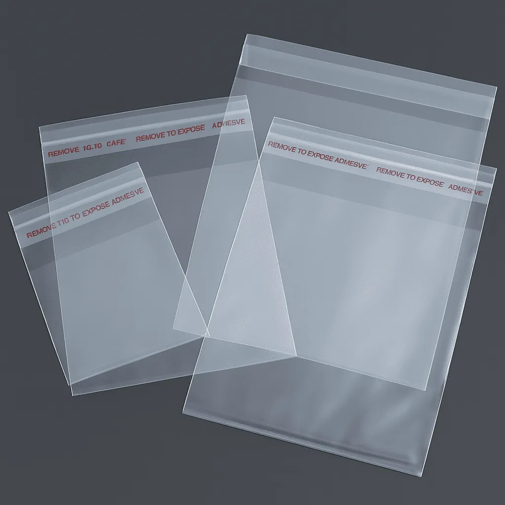 Adhesive flap & tape LDPE bags for garments and retail packaging.